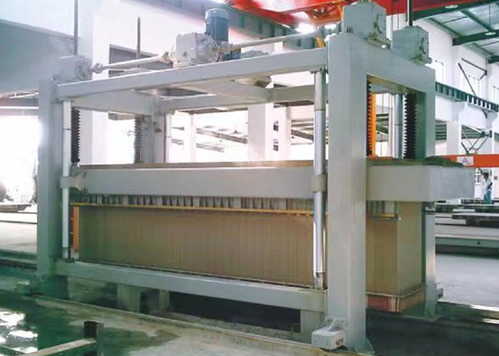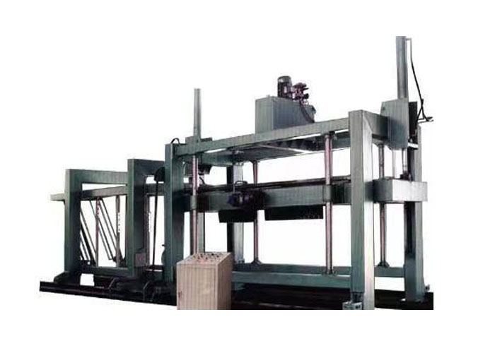 (2)坯體行走:預(yù)養(yǎng)好的坯體帶??罩蟹D(zhuǎn)90度,然后將坯體放在切割小車上或輥道上,由脫模機(jī)構(gòu)脫去???。坯體通過小車或輥道行走進(jìn)行水平切割,切割好后坯體繼續(xù)前行至橫切位置定位,進(jìn)行橫向切割,切割好后前行由行車吊走坯體。